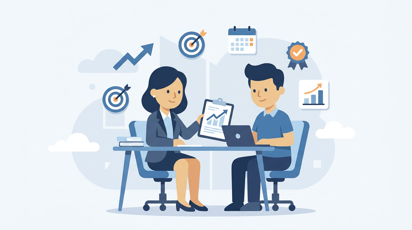 Regularne spotkania kontrolne — co tydzień lub co dwa tygodnie — to serce całego procesu. Na każdym spotkaniu: omów postępy, odnotuj co działa, co wymaga korekty. Sporządź krótką notatkę z każdego check-inu i daj ją pracownikowi do wglądu.